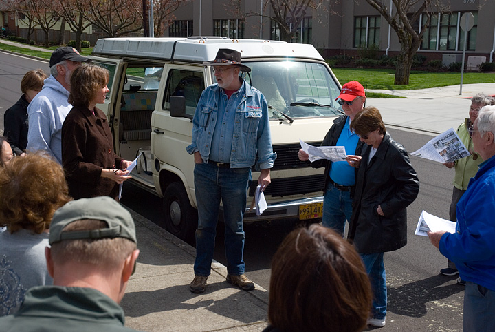 The group met at the Ardenwald Park at the north end of Ardenwald around 1 p.m. and set out for a 2.7-mile walking tour of the neighborhood led by Paul Klein, a Lewelling neighborhood resident and an architect who has been studying the history and historical photographs of Milwaukie’s neighborhoods.