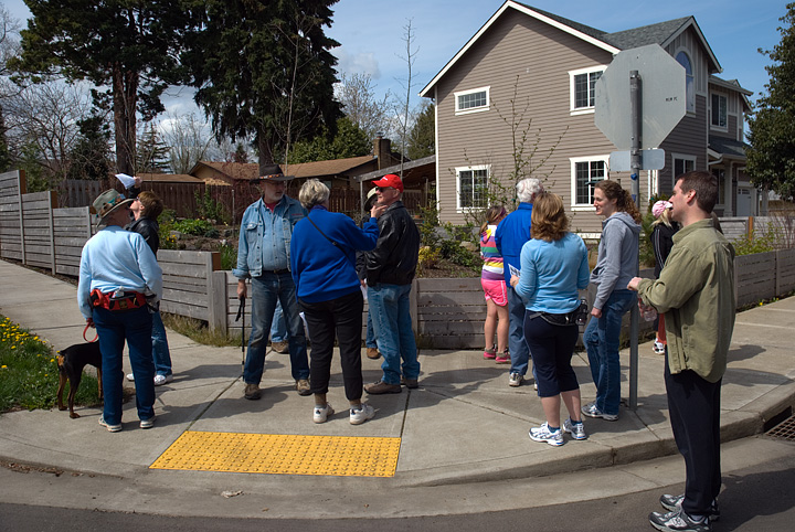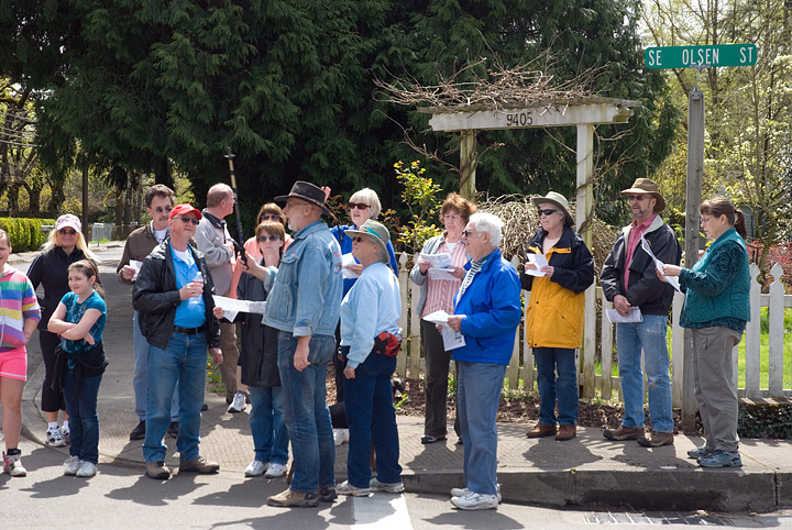 On a sunny Sunday afternoon, about 50 residents from Ardenwald-Johnson Creek and other neighborhoods took to the streets and sidewalk for the inaugural Walk Milwaukie neighborhood tour.