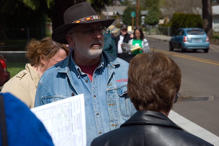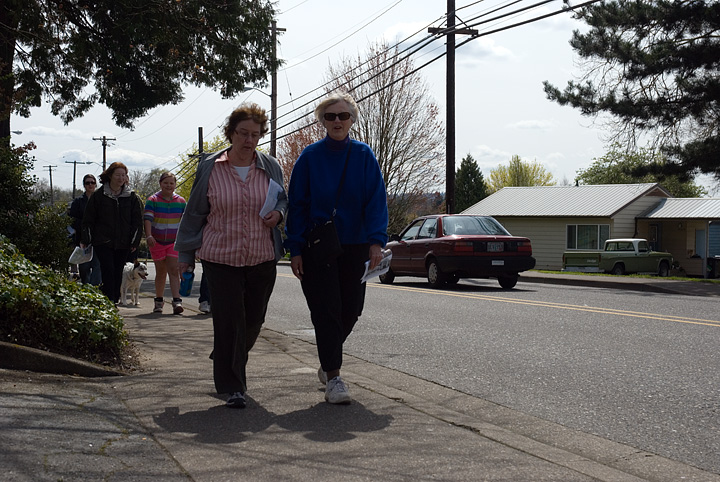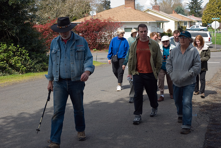 Klein led the group south along S.E. 42nd Ave., to Harvey St., to the south end of Providence Milwaukie Hospital along King and Llewellyn, and returning north along S.E. 32nd Ave.
