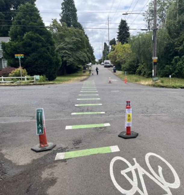 • Flexible delineators at the northeast and southwest corners of each intersection along 29th. (This is because stop signs placed on the east-west cross-streets of 29th create the risk of motor vehicles speeding more freely north-south on 29th.)