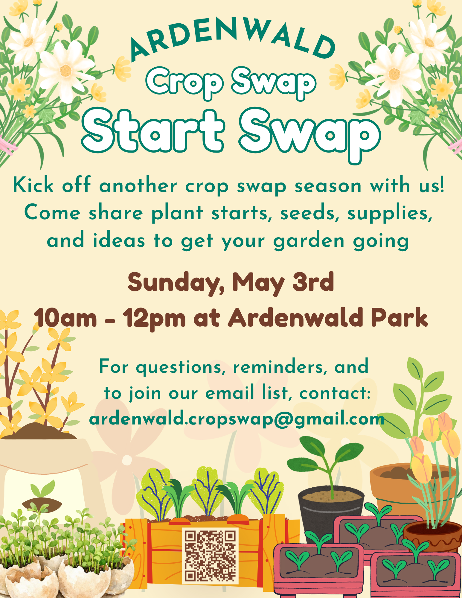 The exact schedule for this year’s ongoing Crop Swaps remains TBD, but watch their Facebook page for the latest, and email ardenwald.cropswap@gmail.com with any questions!